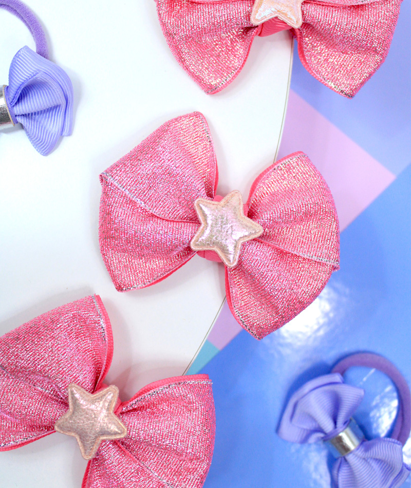 Add a touch of sparkle to your little one’s day with our Pink and Glitter duo! Featuring shimmering two pink bows with an adorable star centre, this set is designed for everyday magic. Perfect for ponytails, buns, or half-up styles, these handmade accessories are gentle on hair and full of charm.